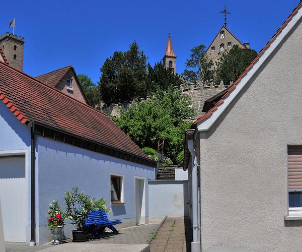 Stadt Abenburg,die Burg ist schon hoch oben zu sehen, beschwerlich greifbar nahe.