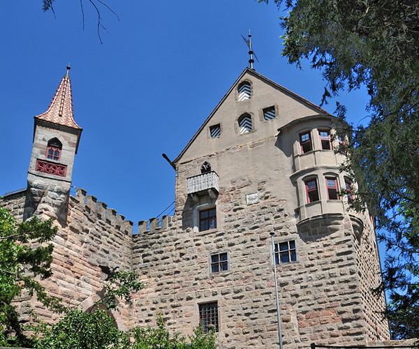 Außenansicht der Burg Abenbergam Eingang im Südwesten der Anlage