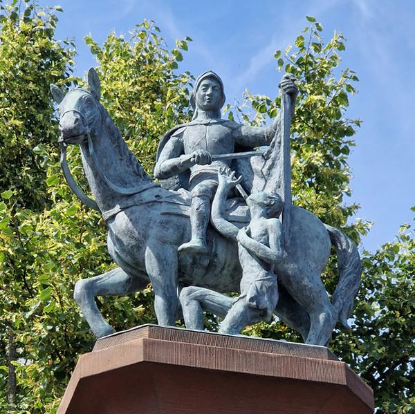 Marktbrunnen.Der Hl. Bonifatius mit Hilfebedürftigen im Gepäck.