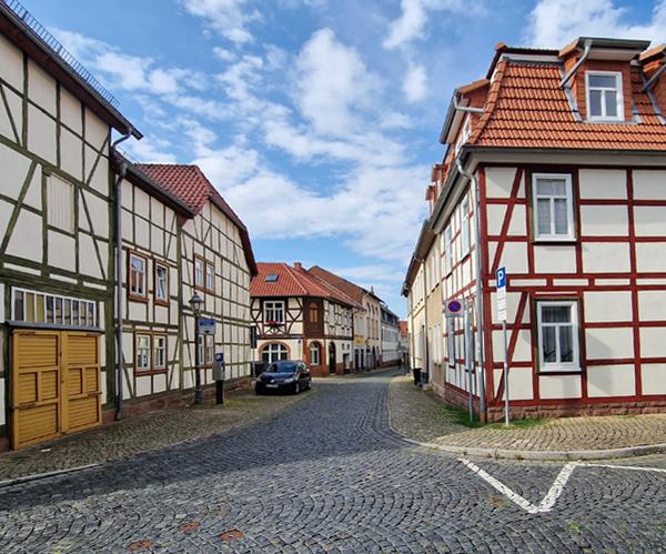 Amtsgasse vor der zentralen Wilhelmstraße.Die Gasse führt zum alten Rathaus und den Barocggarten.