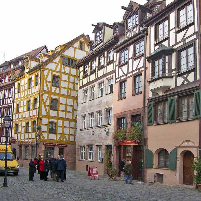 Fachwerkhäuser bilden in der Weißbergergasse ein geschlossene Straßenbild