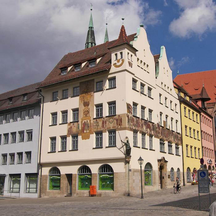 Handelshaus mit Darstellung des traditionellen Nürnberger Handels