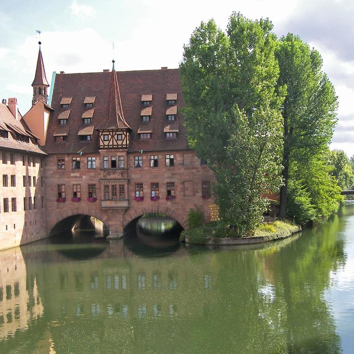 Spital auf der Pegnitzinsel Schütt. Beliebtes Fotomotiv