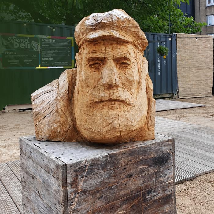Holzkopf sollt man diese Schnitzwerk nich nennen. Dieser Schifferkopf hat sich fest im Griff.