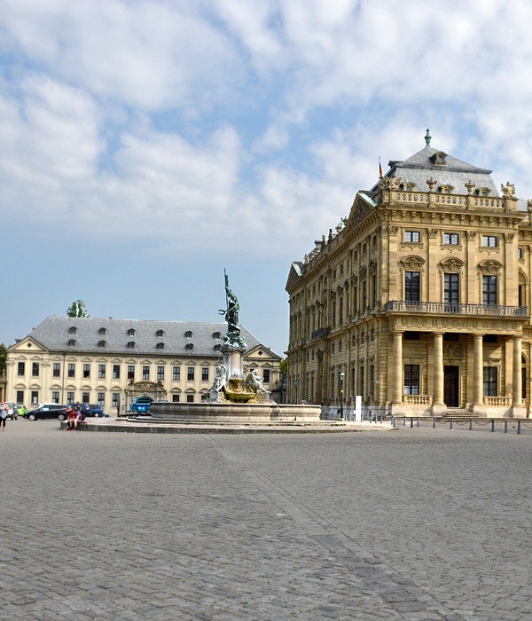 UNESCO-Weltkulturerbe:Die ehemalige Residenz, 1719/44 erschaffen, ist ein Hauptwerk des süddeutschen Barock, maßgeblich in Verantwortung von Balthasar Neumann errichtet.
