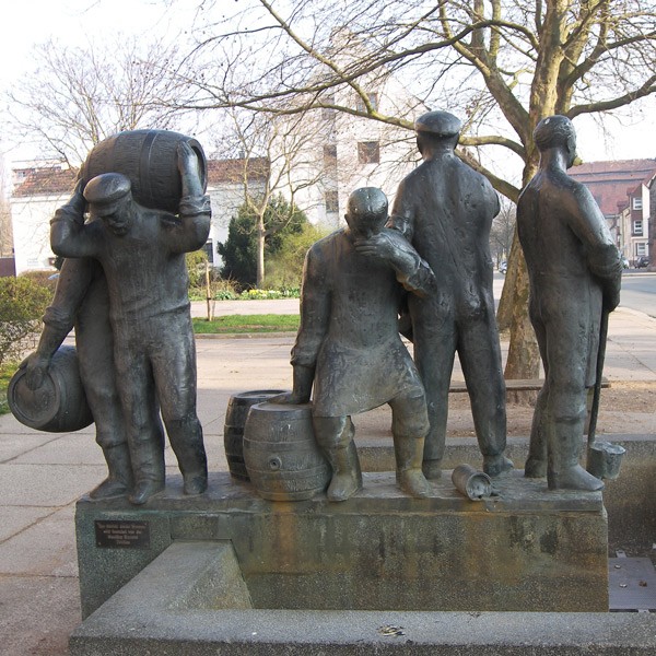 Wirtschaft.Im Bewußtsein ihrer Wirtschaftlichkeit hat die Zwickauer Mauritius-Brauerei diesen Brunnen gesponsert. Über den Künstler erfährt man an dieser Stelle nichts.