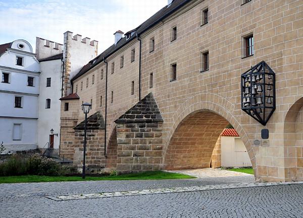Innenhofseite des Landratsamtes.Hier wird Modernes und altmarkgräfliches durch den Brückenbau mit Glockenspiel in seine ganzen Tragweite geboten.