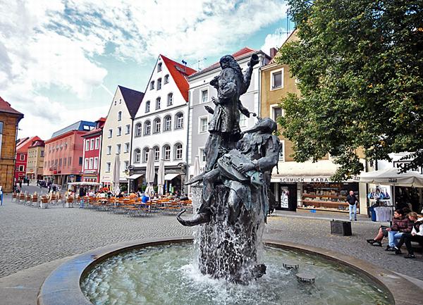 Marktbrunnen.Auf dem von prächtigen Häusern gesäumten Markt von Amberg gibt es auch einen Marktbrunnen, dessen neuzeitlicher Schöpfer selbst Amberger ist.