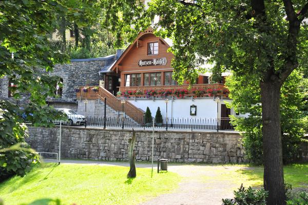 Hutzen-Haiselam Stadtgarten, Das 1969 eröffnete Restaurant Hutzen Haisel, auch Hutzenstube genannt, liegt. Hier liegt am Eingang eines Erzstollens.