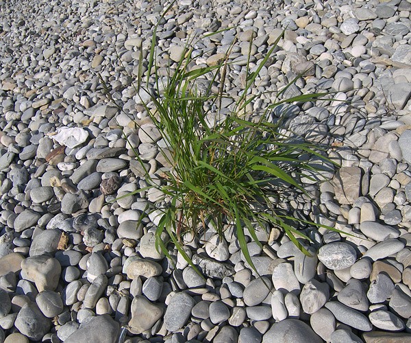 Grasbüschel,echtes Lechgras zwischen Lechgeröll am Lechufer