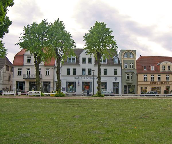 Der Kamp war einst Weide- und Melkplatz von Doberan.Bebauung an der Westseite des Platzes