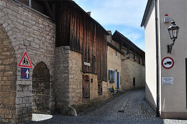Mauerabschnitt am Landknechtsweg.Die Stadtmauer um die neue Altstadt wurde erbaut um 1475 unter Fürst Bischof Wilhelm von Reichenau.