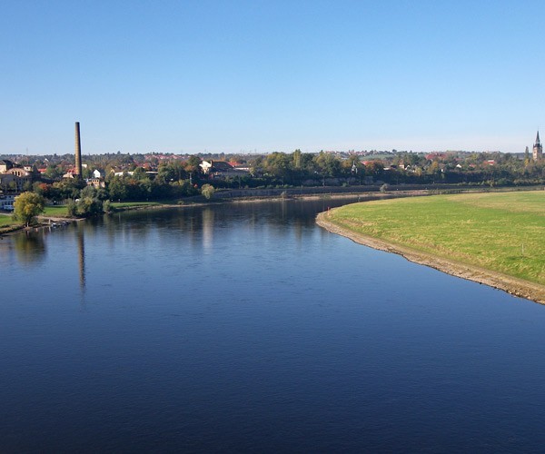 Elbblick auf Briesnitz.Das ehemalige Elbdorf am Landschaftsschutzgebiet Zschoner Grund wurde bekannt durch seinen Gartenstadtcharakter.