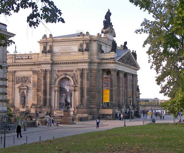 Kunst an den Brühlschen Terassen.Viele Kunsttempel stehen hier nahe der Elbe.
