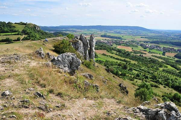 Rodenstein und Walberla.In der Begsenke zwischen den Gipfeln Walberla im Norden und dem Rodenstein im Süden bestand die frühkeltische Siedlung Ehrenbürg.