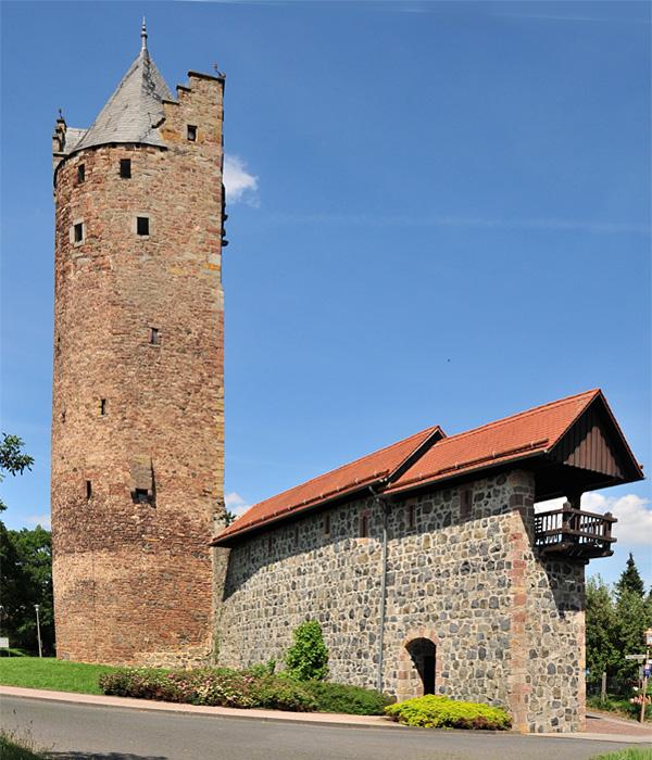 GrauerTurm, Teil der um Mitte 12. Jh.(?) geschaffenen Stadtmauer. Er bietet von oben beste Aussichten über Fritzlar.