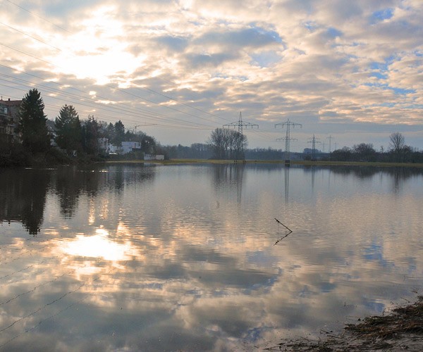 Rednitz im Westen von Fürth. Hier ist die Aue schon reichlich überflutet.