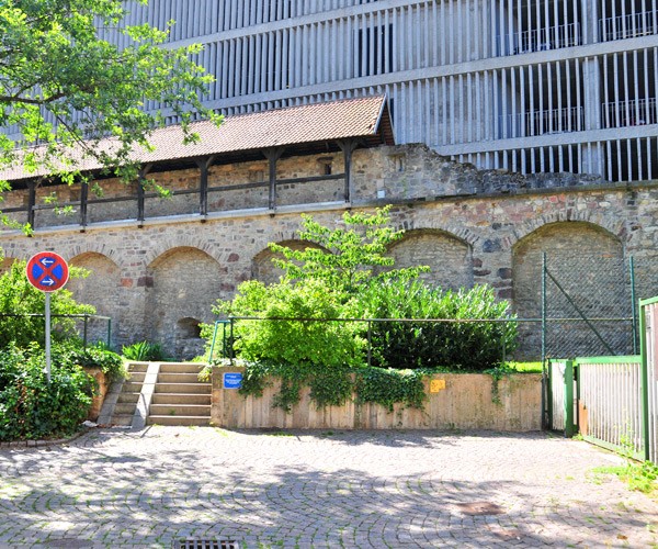 Palisadengang an der Stadtmauervor dem Parkhaus, Bauhausstraße