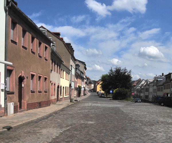 Altstadt Geithain.Hinter dem Unteren Tor verzweigt sich die Straße.