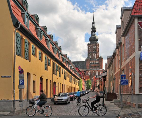 Der lange Speicherkomplex Hunnenstraße 22 ist klassizistisch geprägt.