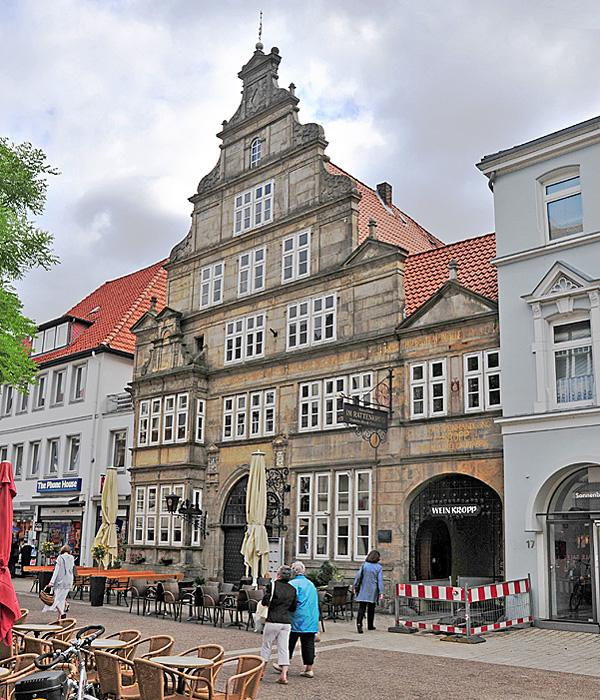 Dar Rattenkrug in Hameln,1250 erbaut, 1568 bis 1569 umgebaut im Stil der Renaissance. Seit wann trägt dieses Haus den appetitlichen Namen? Seit fer Rattenfänger von Hameln hier Bayrisch Bier aus einem Rattenkrug hinnterstürzte.