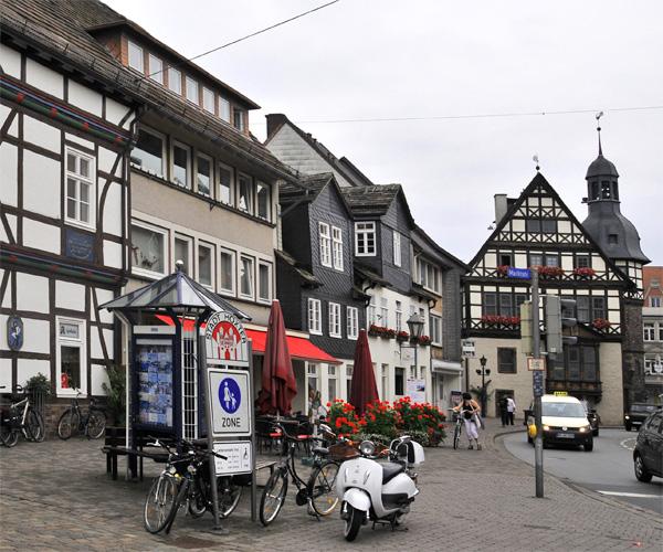 historische Rathaus von Höxter rechts hinten im Bild