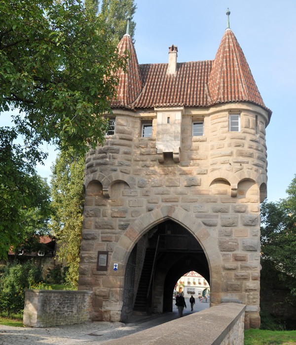 Einersheimer Tor.1551 erfolgte der Ausbau des Tores zu einer massiven Wehranlage mit Verbindung des äußeren und inneren Tores.