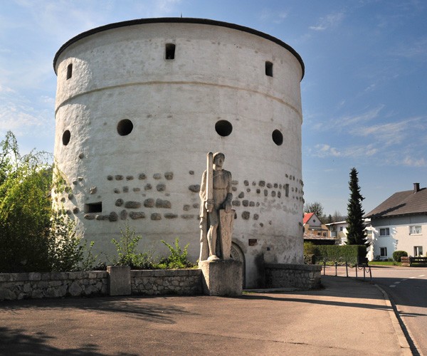 Schleiferturm,erbaut 1476 bis 1486 aus Material des Herzogschlosses, seit 1931 Umnutzung als Ehrenmal für die Gefallenen des 1. und 2. Weltkrieges mit ensprechend friedfertiger Symbilfigur.