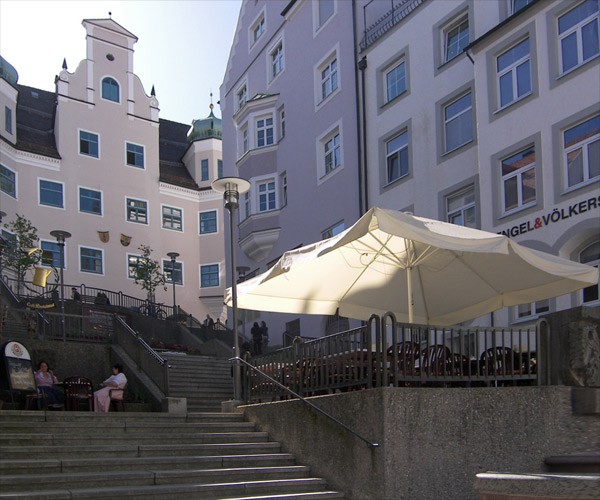 Die Freitreppe wurde 1903/04 angelegt,Sie bietet einen schönen Blick auf den Rathausplatz.