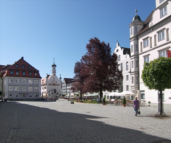 Rathausplatz.Die einstige Marktstraße der Reichsstadt weist stattliche Patrizierbauten auf.