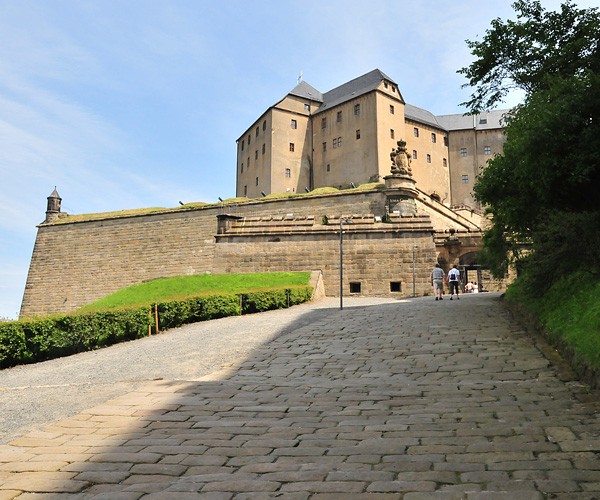 vor der Festung Lönigstein:An Hempels Eck ragt der Fels am weitesten gen Westen. Der Beobachtungsturm am Horn wurde 1601 errichtet.