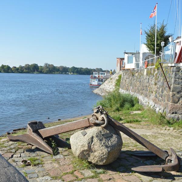 Lauenburg an der Elbe.Vorn liegen typische Anker für Flußschiffe Mitte 29. Jh.. Dabei wurden jeweils zwei Bug- und zwei Heckanker benötigt.