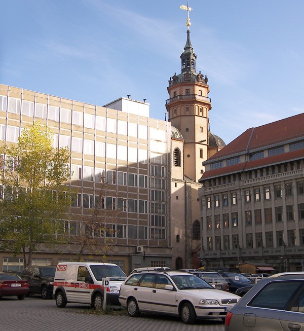 Hof mit Nikolaikirche.Die 1175) erbaute, spätgotische dreischiffige Hallenkirche wurde klassizistisch umgestaltet. Bekannt wurde sie mit den hier einst stattfindenden Friedensgebeten.