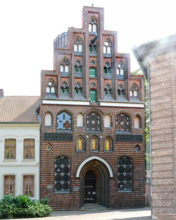 Kalandhaus,1481 durch die fromme Kalander-Bruderschaft als gotisches Dielenhaus erbaut, entsprechend goldene Figuren am siebenteiligen Giebel