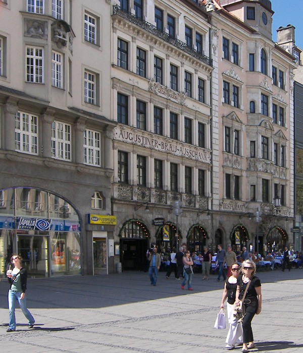 Augustiner Bräu, Ausschank:Architekt Herbert Jensen regte die Einrichtung eines Fußgängerbereichs an, die 1966 beschlossen wurde. Das passte auch für den Augustiner-Bräu-Ausschank.