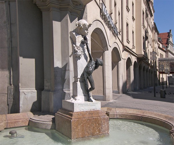 Brunnen an der Neuhauser Straßemit Brunnenbüberl, gestaltet 1895 von Matthias Gasteiger