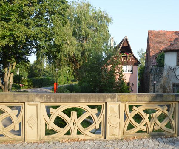 Sattelmayer-Brücke.Sie war die Verbindung zwischen dem ummauerte Spitalhof und ebenso geschützten Altstadt.