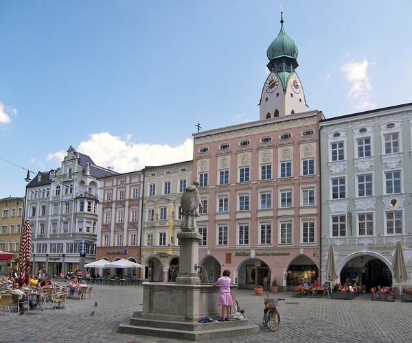 Nepomukbrunnenauf derben Kopfsteinpflaster am Max-Josef-Platz