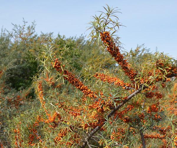 Sanddornkultur.Auf dem Weg von Putgarten nach Vitt ird die heimische Pflanze kultiviert.