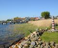 Die große Insel Rügen ist seit 1936 durch den Rügendamm zwischen Stralsund und Altefähr mit dem Festland verbunden. Rügen ist mit fast 600 km Ostseeküste und entsprechendem landschaftlichen Formenreichtum ein bedeutendes Erholungsgebiet. Dänen hatten 1168 durch ihre Angriffe mit dem Fall von Arkona und Verbrennung des Standbildes der Gottheit Swantewit die Selbständigkeit des Slawentums auf Rügen beseitigt. Mit zunehmend deutscher Besiedlung und Christianisierung geriet die Bevölkerung für Jahrhunderte in versklavende Leibeigenschaft.