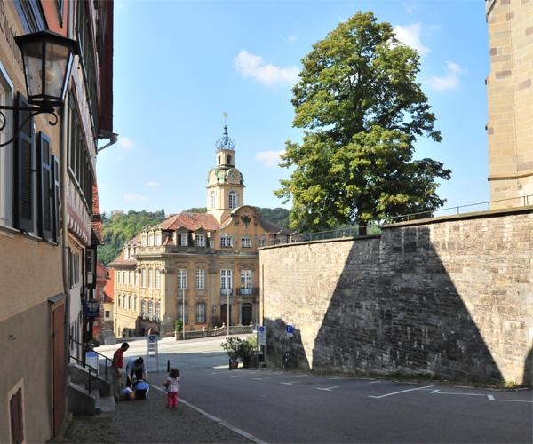 Das Rathaus von Schwäbisch-Hallsteht seit etwa 1730 barock und palaisartig am Marktplatz.