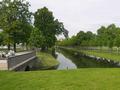 Gartenkultur Plastiken Kreuzkanal. Blick über den Kreuzkanal zum Schweriner Schloss