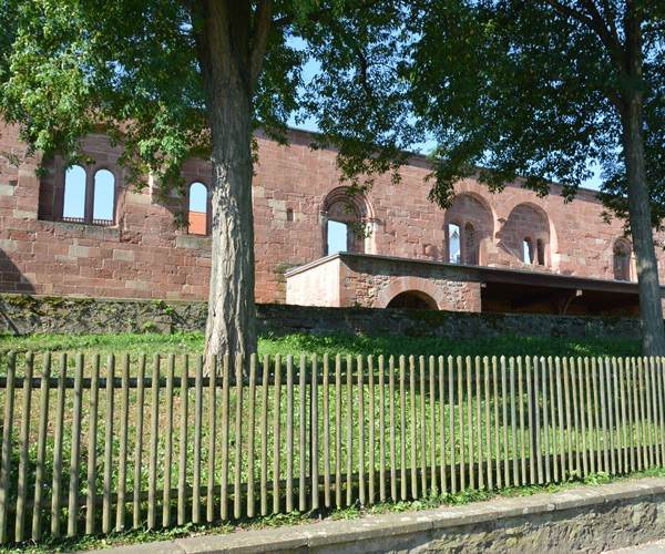 Das Palatium, 1187/88 als Jagd- oder Wohnschloss errichtet. Das "Rote Schloss" wurde nach dem Niedergang der Staufer bis auf den als Stadtmauer dienende Teil abgeräumt.