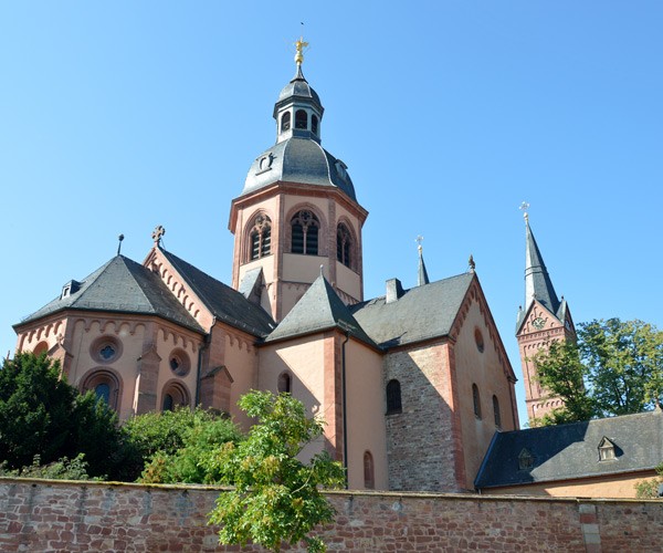 Einhard-Basilika, Kirchenschiff (13. Jh.), frühgotisch ergänzt um Choranlage mit mächtigem Vierungsturm