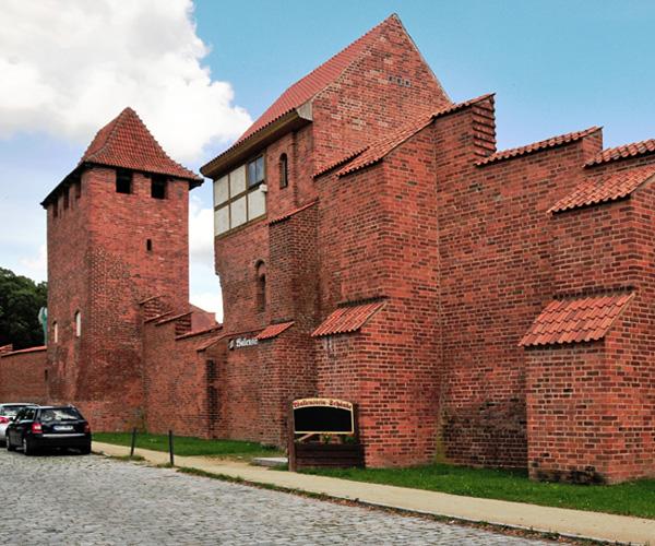 Wieckhaus und Mauerturmam Knieperwall. Der Aufbau der Stadtbefestigung war vielfältig.