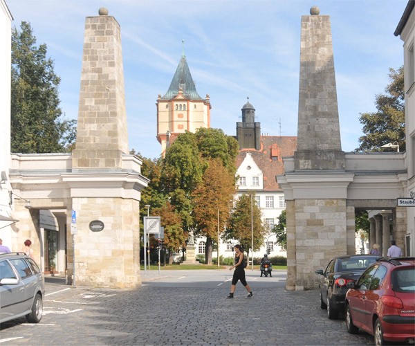 Ludwigsttor (1810),Klassizismus, von Obelisken und Pavillons flankiertes Stadttor, Anbauten mit Kollonaden