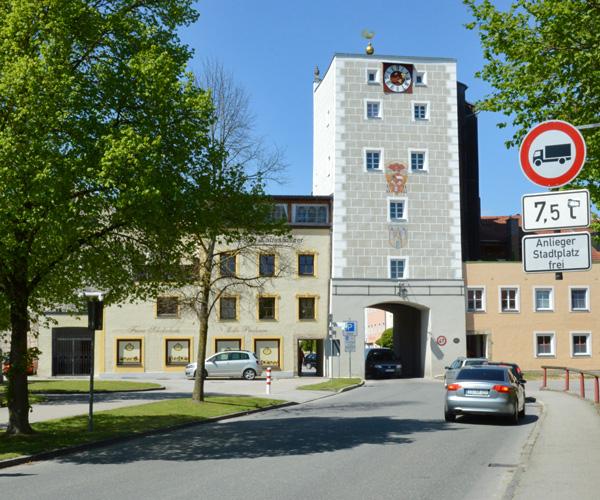 Laufener bzw. Salzburger Tor, Wehrturm mit Wappen des Erzbischofs Antonius von Harrach