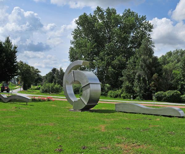 Bildende Kunst vor dem Stadttor von Tribsees.Wer entlang der Chausse an diesem Gebilde vorbei rast, kommt nicht hinter die tiefe Symbolik dieses Kunstwerkes - edles Material aus Wellen und Ballen.