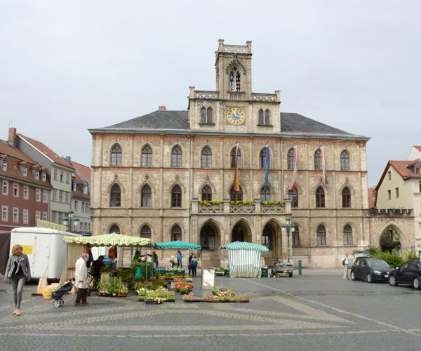 Rathaus Weimar,1841 erbaut, Neugotik, mit Glockenspiel