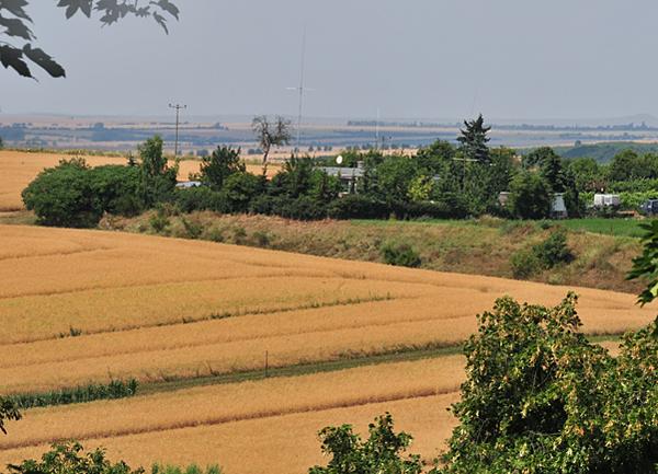Felder ziehen sich bis dicht an die Stadt Weißensee heran.Pralle Ähren auf dürrem Halm. Es wird Zeit.